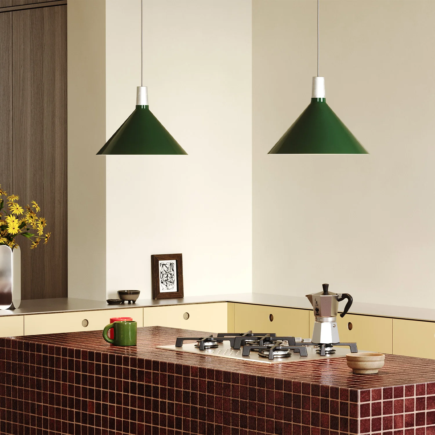 Bower is the debut shade series from Tala. Combining hand-spun steel shades from Yorkshire, UK, with anodised aluminium pendants, the modular system and numerous colours and sizes offers a variety of display options. The Bower C360 shade is a classic coolie shape, creating a bold and striking display while delivering an even spread of light.